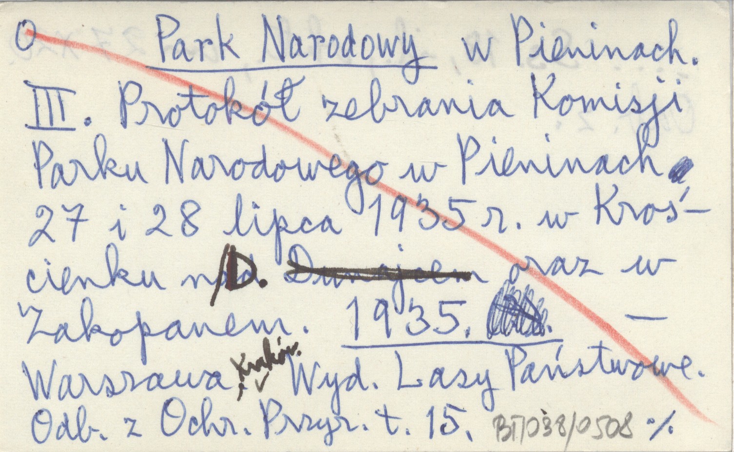 Park Narodowy w Pieninach. III. Protokół zebrania Komisji Parku Narodowego w Pieninach 27 i 28 lipca 1935 r. w Krościenku/D. oraz w Zakopanem. 1935