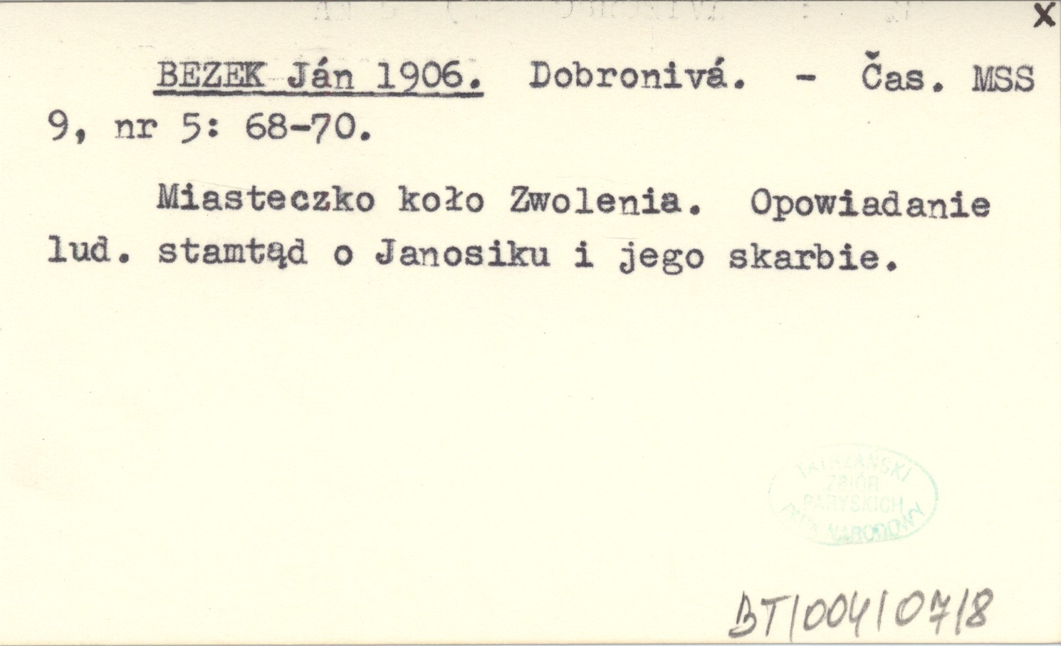 Časopis Muzeálnej Slovenskej Spoločnosti, 9, nr 5: 68-70. Miasteczko koło Zwolenia. Opowiadanie lud. stamtąd o Janosiku i jego skarbie.