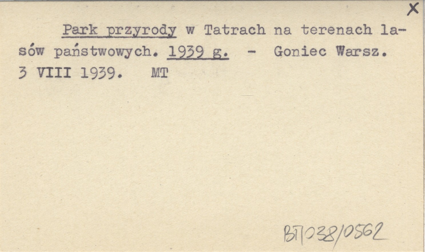 Park przyrody w Tatrach na terenach lasów państwowych. 1939 g