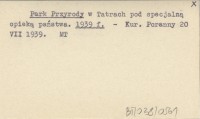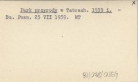 Park Przyrody w Tatrach pod specjalną opieką państwa. 1939 f
