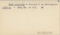 Park przyrody w Tatrach i na Jaworzynie. 1939 m