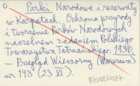 Parki Narodowe i rezerwaty. 1930