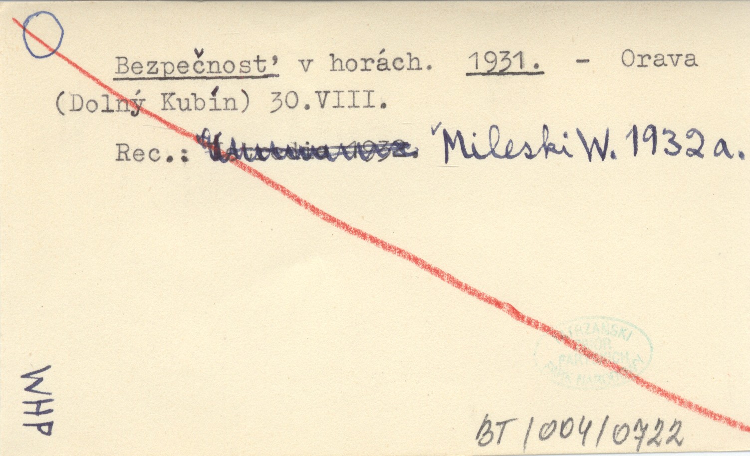 Dolný Kubín Orava, 30.VIII. REC: MILESKI W. 1932 a