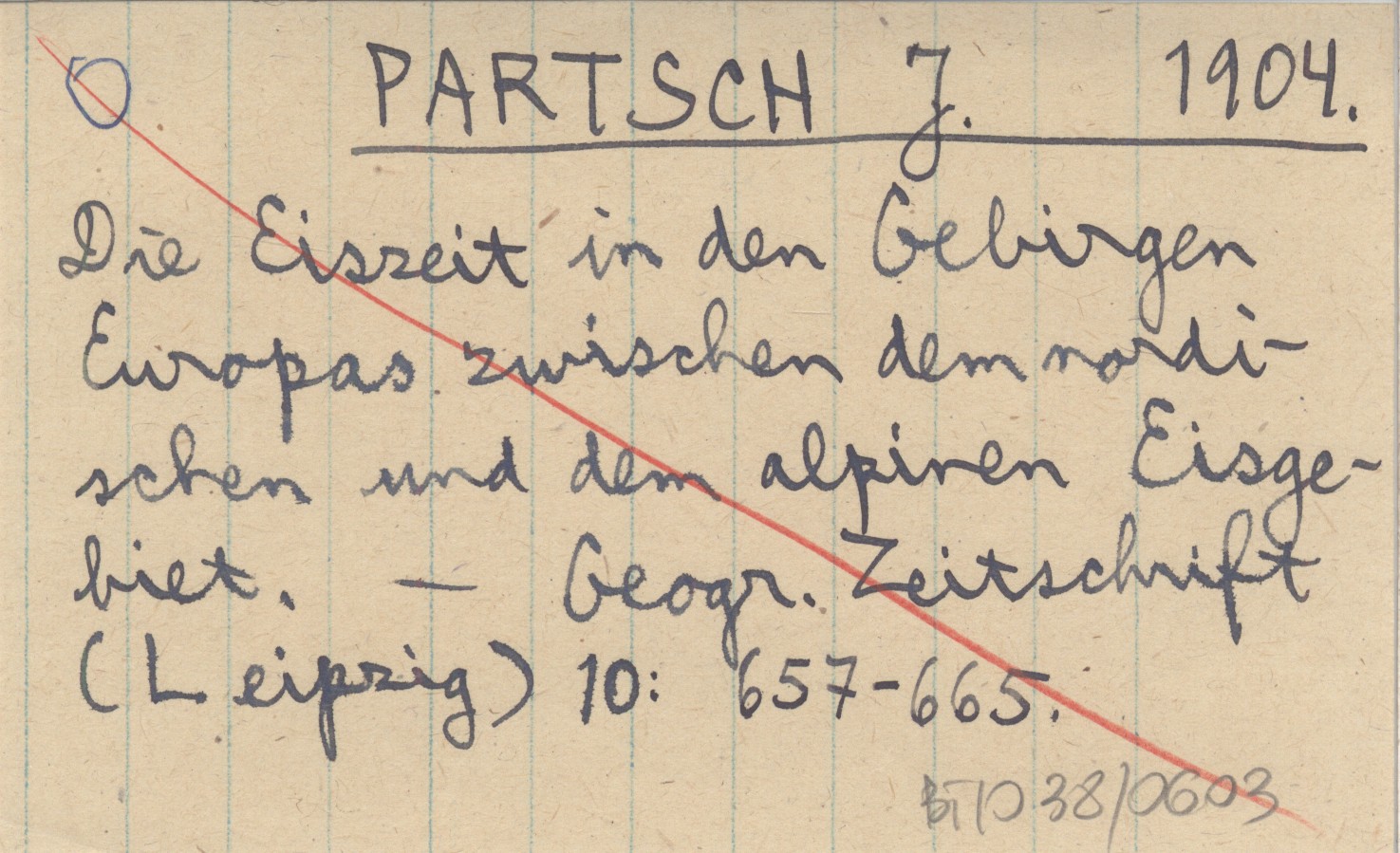 PARTSCH J. 1904 Die Eiszeit in den Gebirgen Europas zwischen dem nordischen und dem alpiren Eisgebiet.