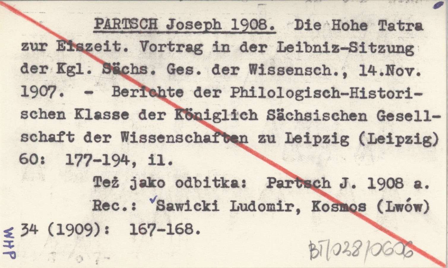 Berichte der Philologisch-Historischen Klasse der Königlich Sächsischen Gesellschaft der Wissenschaften zu Leipzig (Leipzig) , 60: 177-194, il. Też jako odbitka: Partsch J. 1908 a. REC: SAWICKI Ludomir, Kosmos (Lwów) 34 (1909): 167-168.