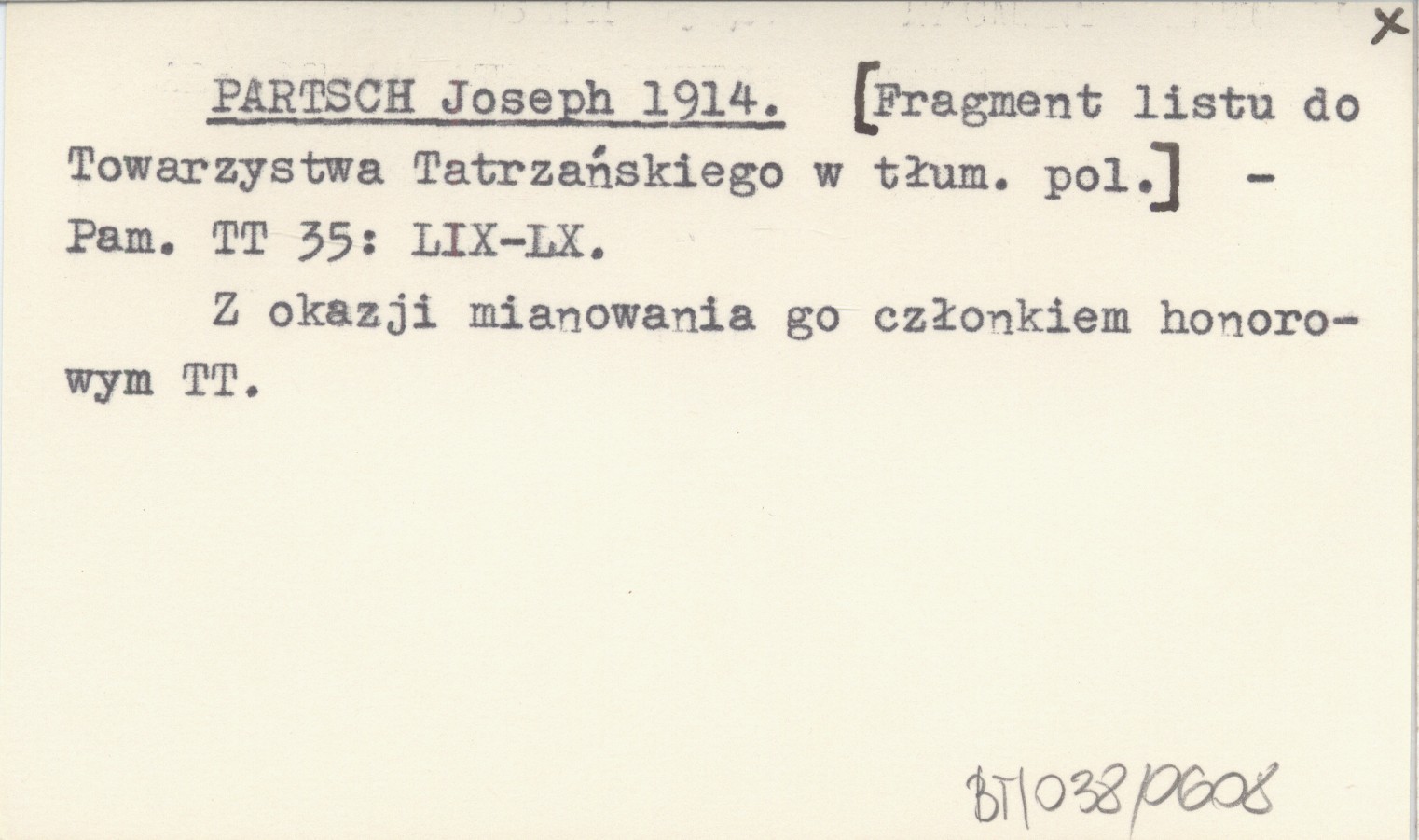 PARTSCH Joseph 1914 [Fragment listu do Towarzystwa Tatrzańskiego w tłum. pol.].