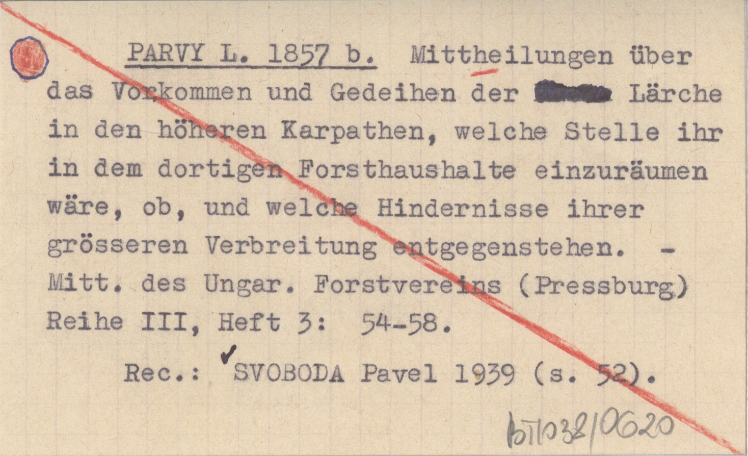 Mitt. des Ungar. Forstvereins (Pressburg) , Reihe III, Heft 3: 54-58. REC: SVOBODA Pavel 1939 (s. 52)