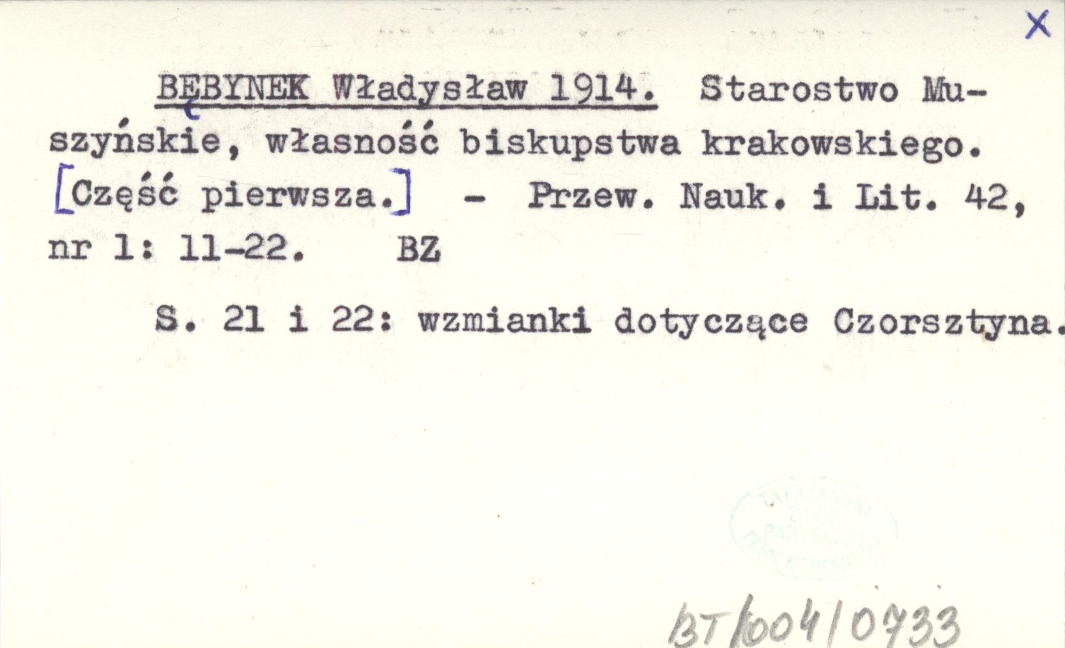 BĘBYNEK Władysław 1914 Starostwo Muszyńskie, własność biskupstwa krakowskiego. [Część pierwsza.]