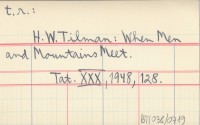 t. r. H. W. Tilman: When Men and Mountains Meet.
