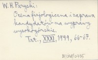 W. H. Paryski PARYSKI W. H. Ocena fizjologiczna i zaprawa kandydatów na wyprawy wysokogórskie.
