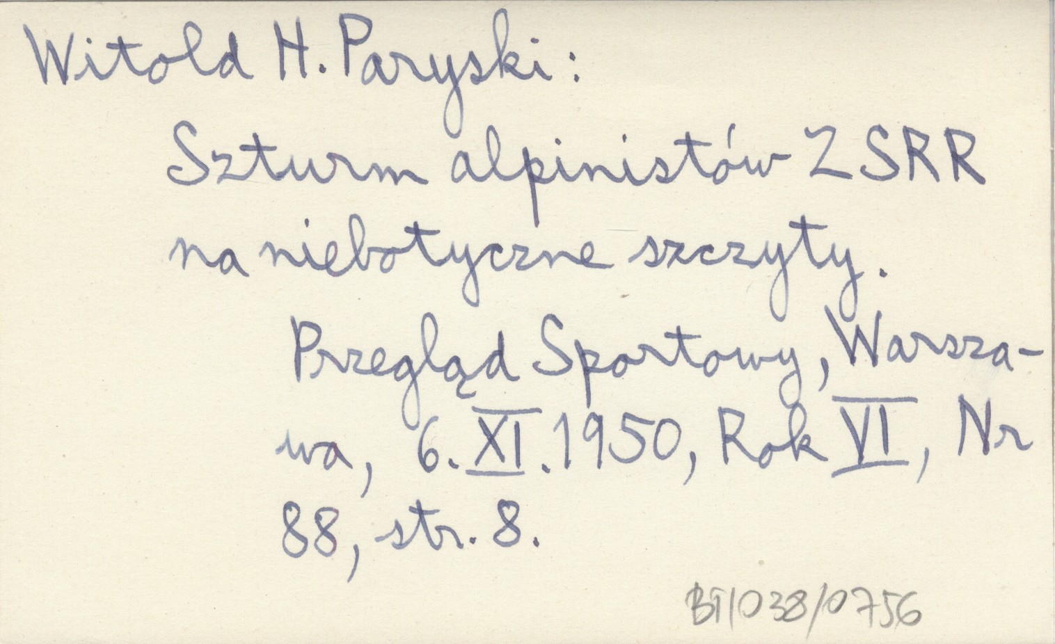 Witold H. Paryski PARYSKI Witold H. Szturm alpinistów ZSRR na niebotyczne szczyty.