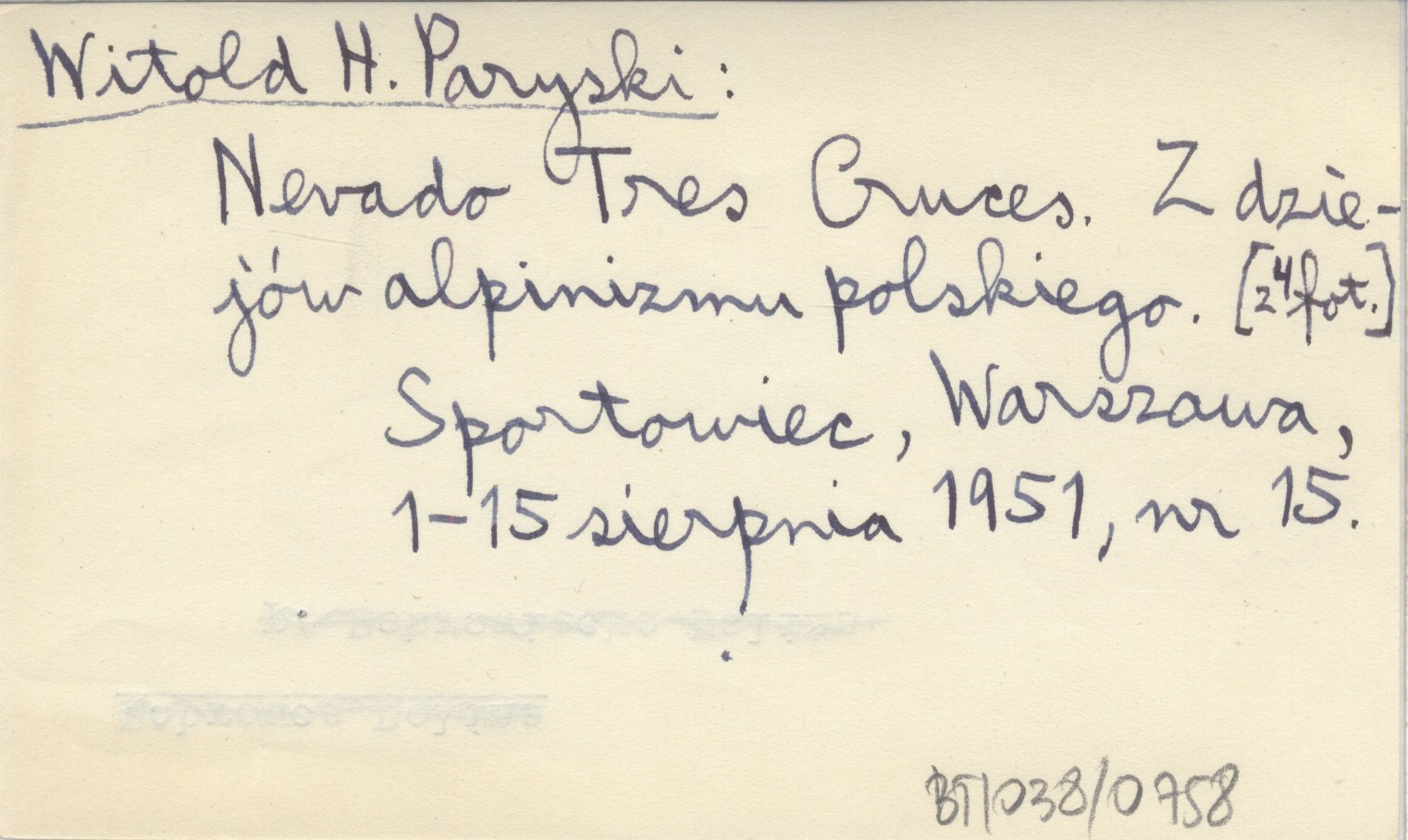 Witold H. Paryski PARYSKI Witold H. Nevado Tres Cruces. Z dziejów alpinizmu polskiego.