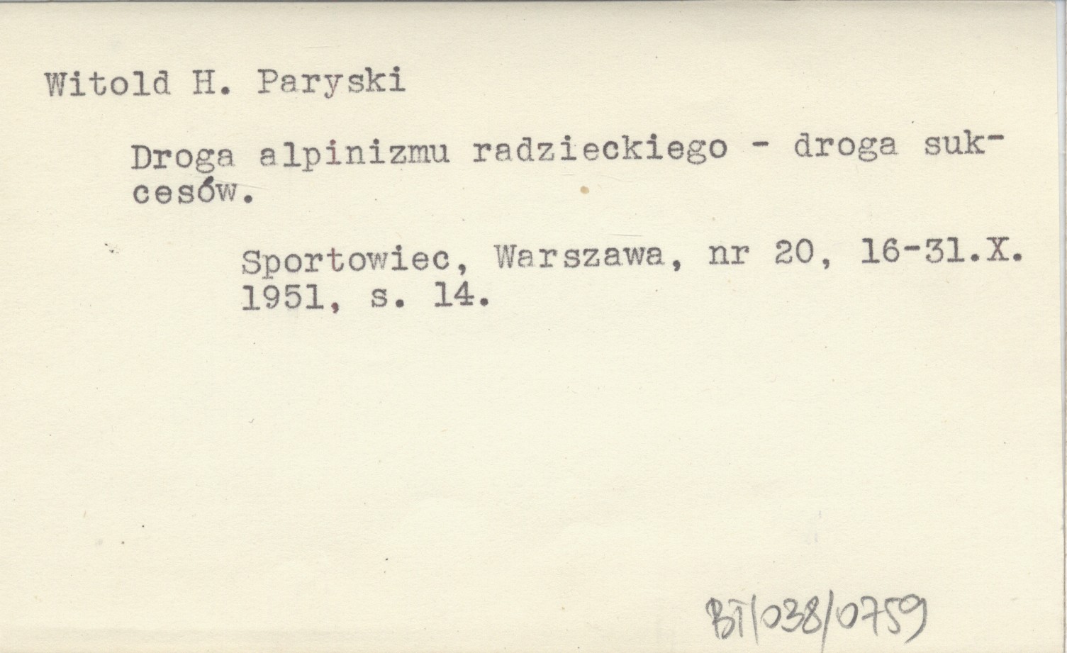 Witold H. Paryski PARYSKI Witold H. Droga alpinizmu radzieckiego - droga sukcesów.