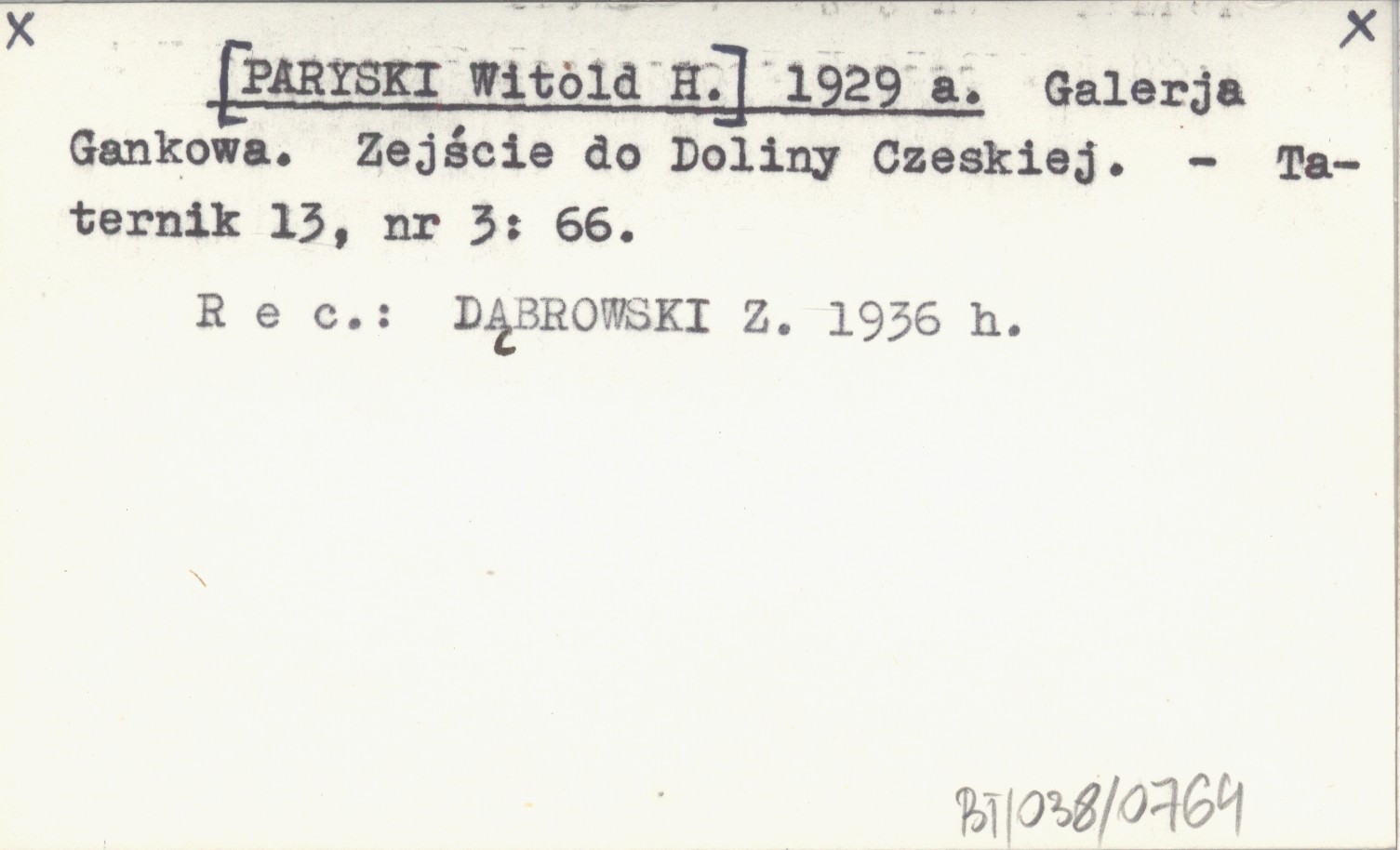 [PARYSKI Witold H.] 1929 a Galerja Gankowa. Zejście do Doliny Czeskiej.