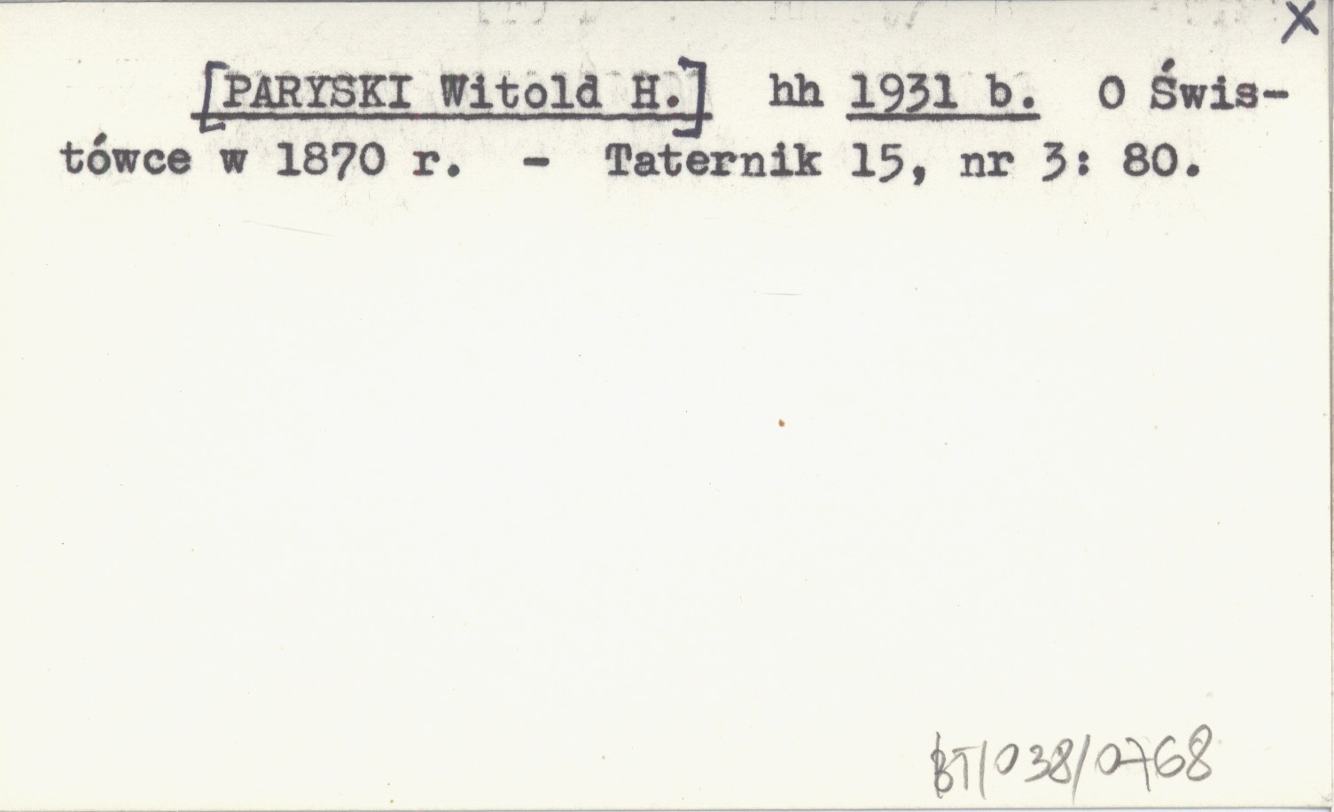 hh [PARYSKI Witold H.] 1931 b O Świstówce w 1870 r.
