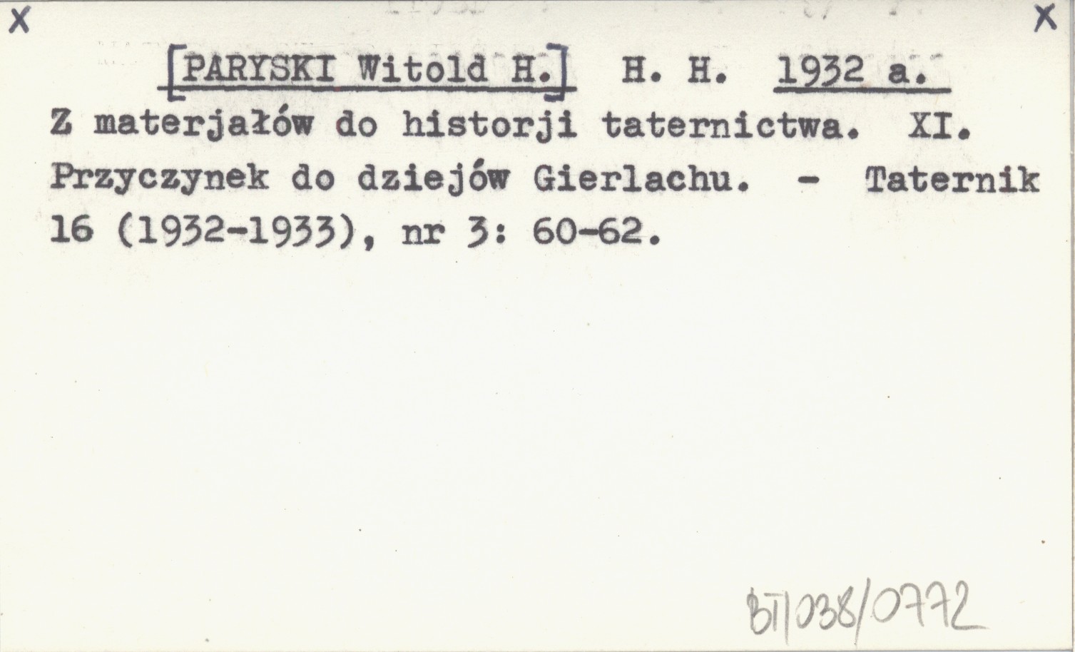 H. H. [PARYSKI Witold H.] 1932 a Z materjałów do historji taternictwa. XI. Przyczynek do dziejów Gierlachu.