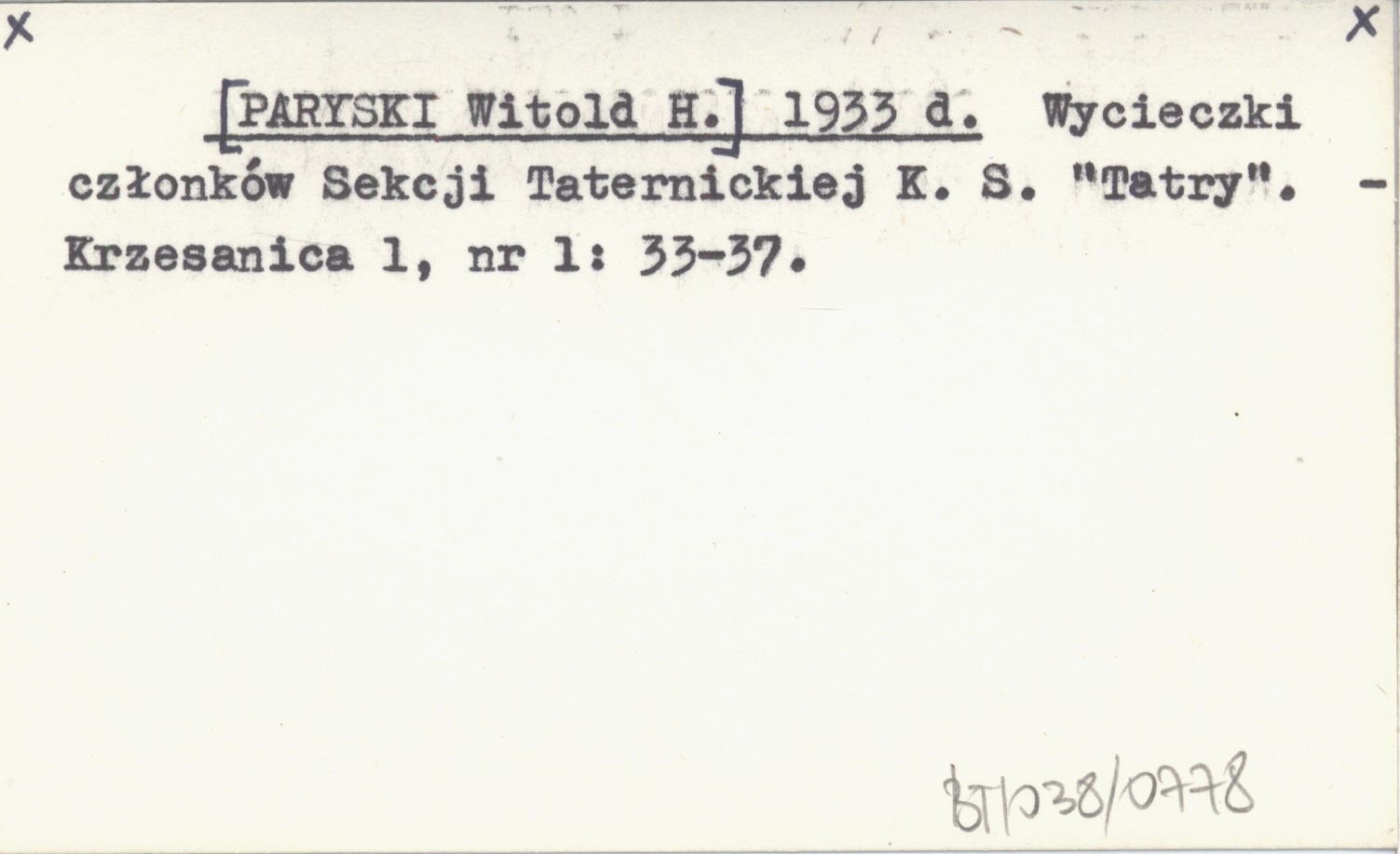 [PARYSKI Witold H.] 1933 d Wycieczki członków Sekcji Taternickiej K. S. "Tatry".