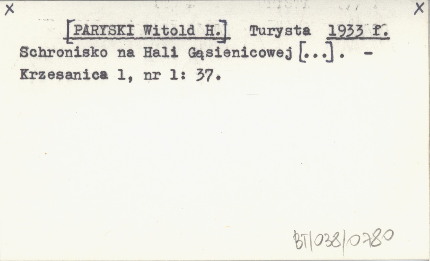 Turysta [PARYSKI Witold H.] 1933 f Schronisko na Hali Gąsienicowej [...].
