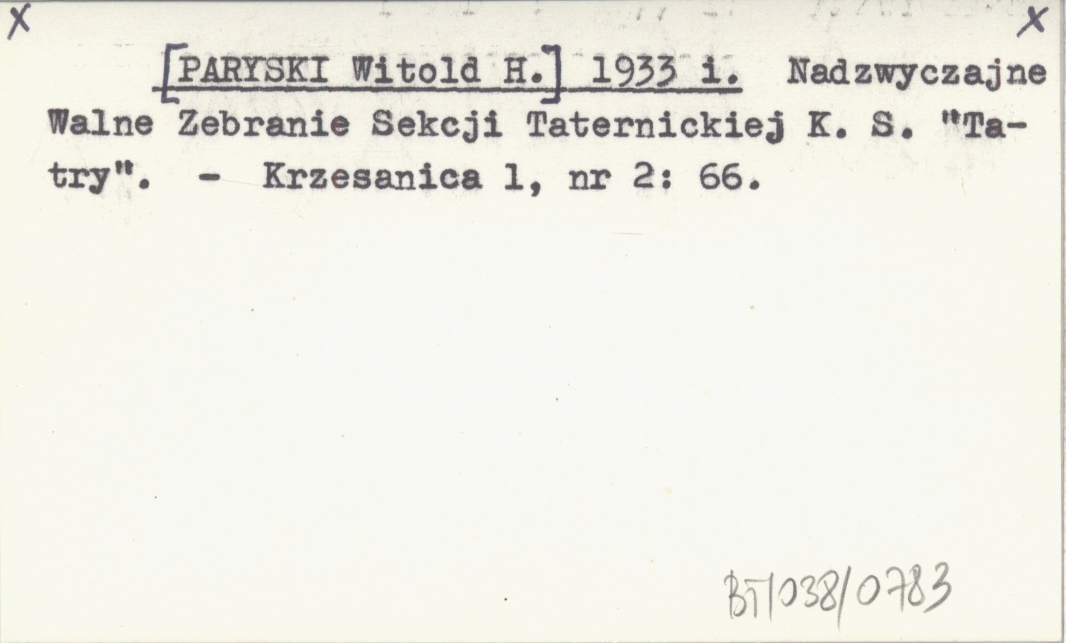 [PARYSKI Witold H.] 1933 i Nadzwyczajne Walne Zebranie Sekcji Taternickiej K. S. "Tatry".