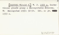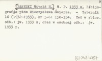 W. P. [PARYSKI Witold H.] 1933 n Bibljografja pism Mieczysława Świerza.