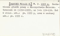 W. P. [PARYSKI Witold H.] 1933 o Zestawienie głosów prasy o Mieczysławie Świerzu.