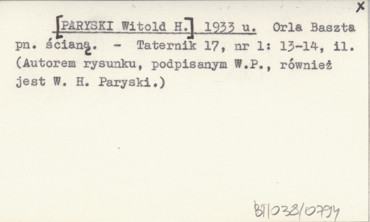 Taternik, 17, nr 1: 13-14, il. (Autorem rysunku, podpisanym W.P., również jest W. H. Paryski.)