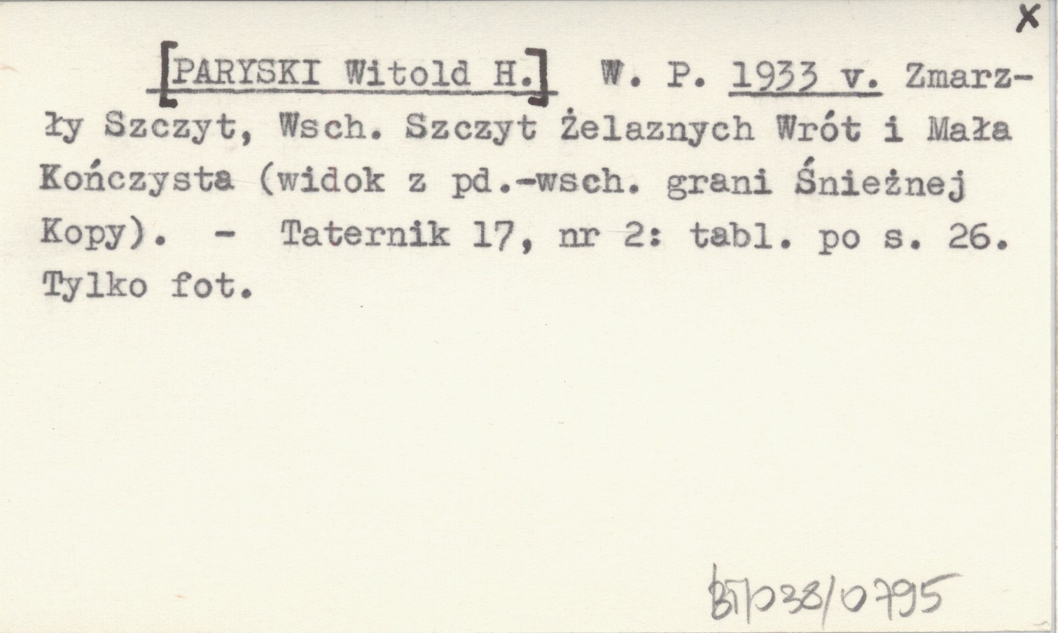 W. P. [PARYSKI Witold H.] 1933 v Zmarzły Szczyt, Wsch. Szczyt Żelaznych Wrót i Mała Kończysta (widok z pd.-wsch. grani Śnieżnej Kopy).