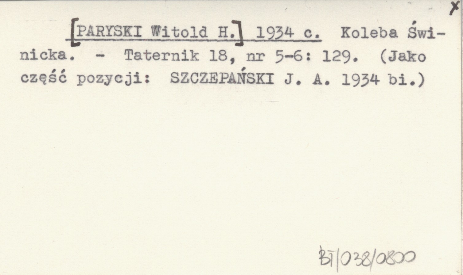 Jako część pozycji: SZCZEPAŃSKI J. A. 1934 bi