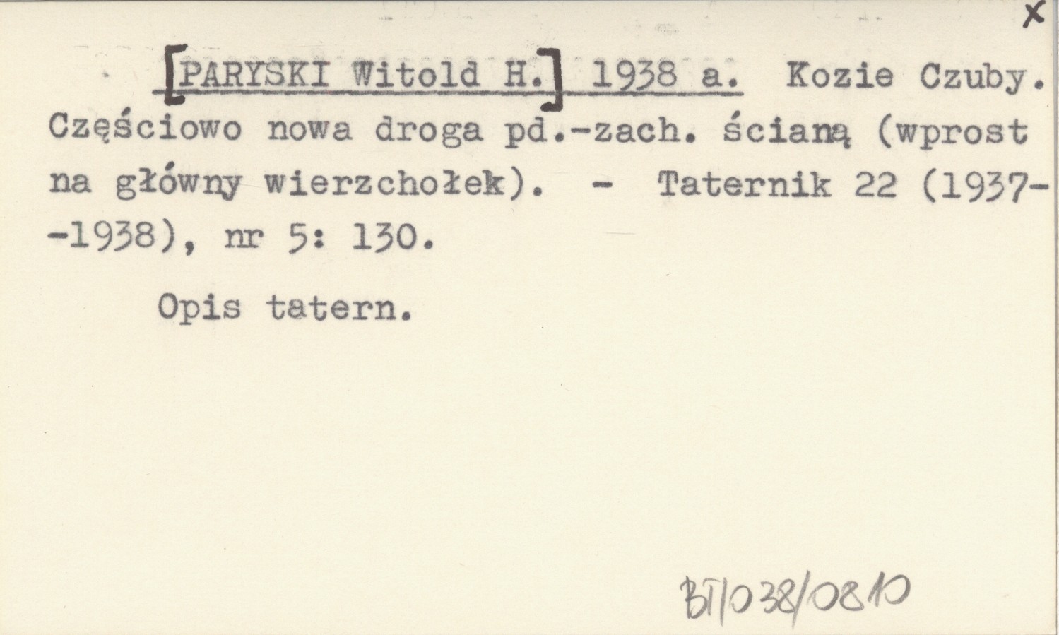 [PARYSKI Witold H.] 1938 a Kozie Czuby. Częściowo nowa droga pd.-zach. ścianą (wprost na główny wierzchołek).