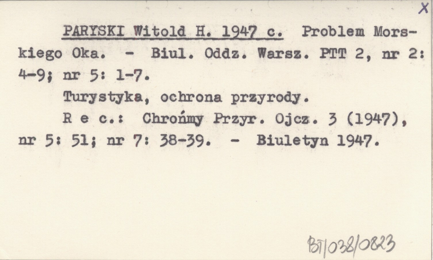 Biuletyn Oddziału Warszawskiego PTT, 2, nr 2: 4-9 ; nr 5: 1-7. Turystyka, ochrona przyrody. REC: Chrońmy Przyr. Ojcz. 3 (1947), nr 5: 51; nr 7: 38-39 ; Biuletyn 1947 ;