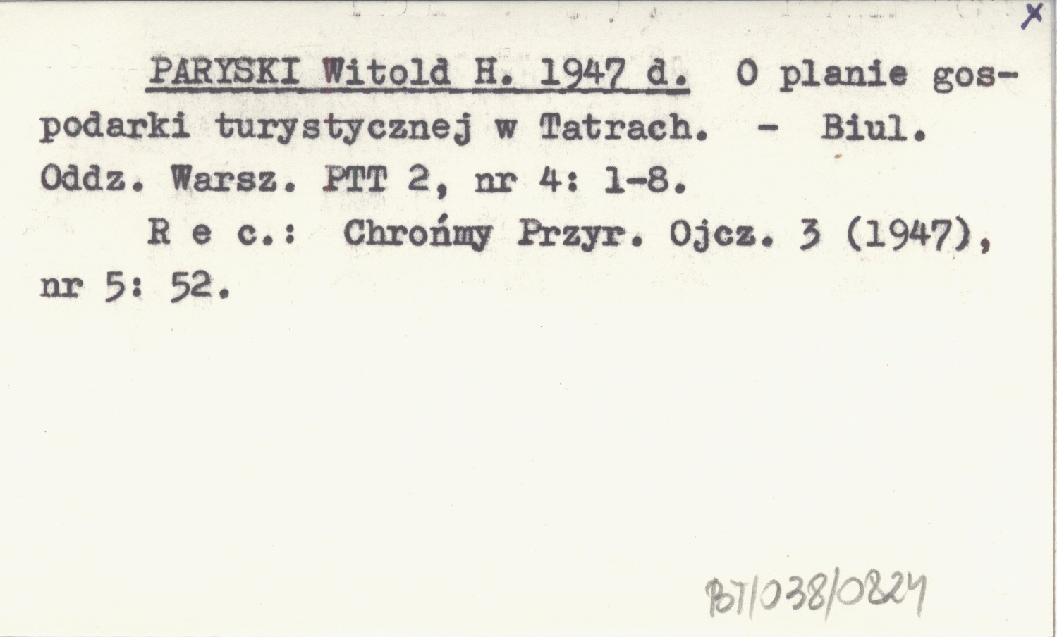PARYSKI Witold H. 1947 d O planie gospodarki turystycznej w Tatrach.