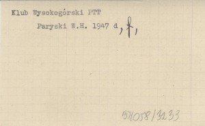 Projekt Digitalizacja fiszek z Bibliografią Tatr i Podtatrza Witolda Henryka Paryskiego jest finansowany ze środków Ministra Kultury i Dziedzictwa Narodowego oraz Tatrzańskiego Parku Narodowego.