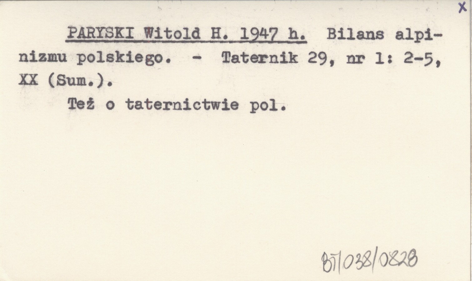 Taternik, 29, nr 1: 2-5, XX (Sum.). Też o taternictwie pol.