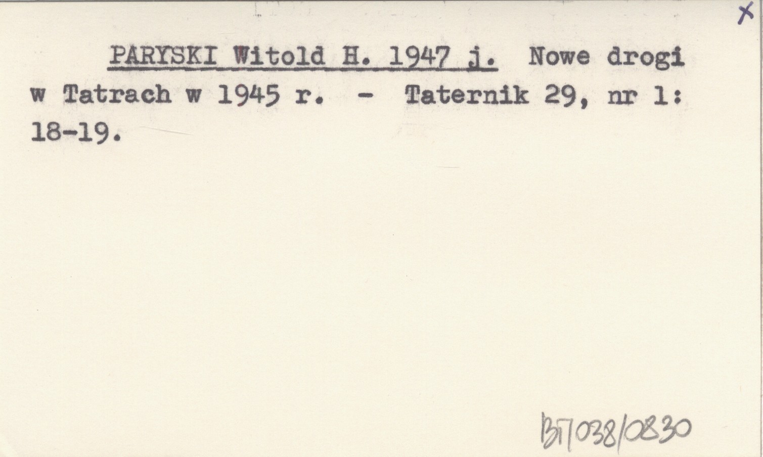 PARYSKI Witold H. 1947 j Nowe drogi w Tatrach w 1945 r.