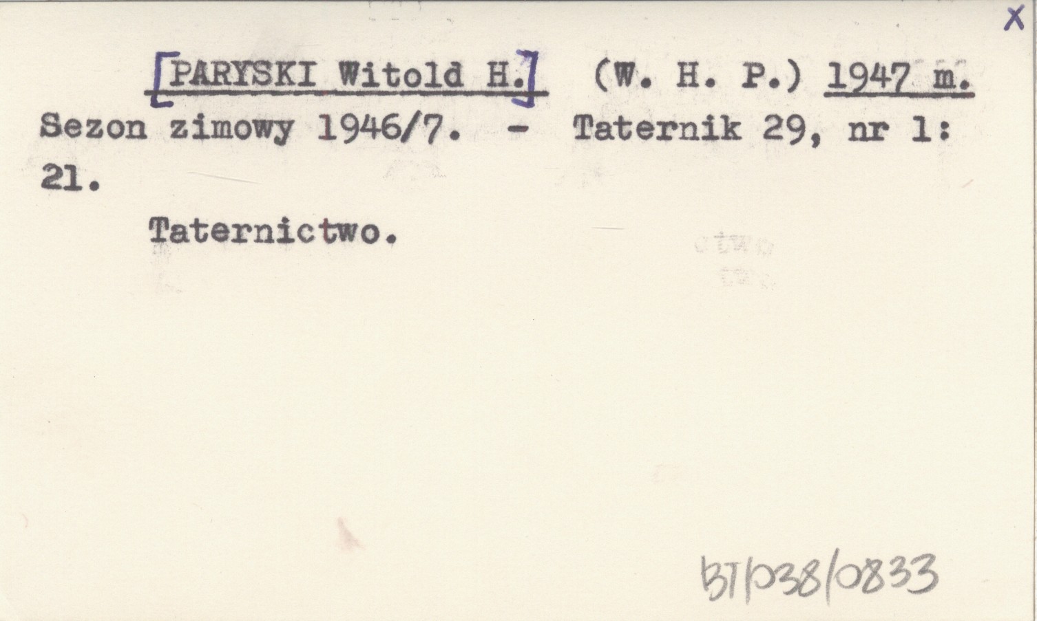 (W. H. P.) [PARYSKI Witold H.] 1947 m Sezon zimowy 1946/7.