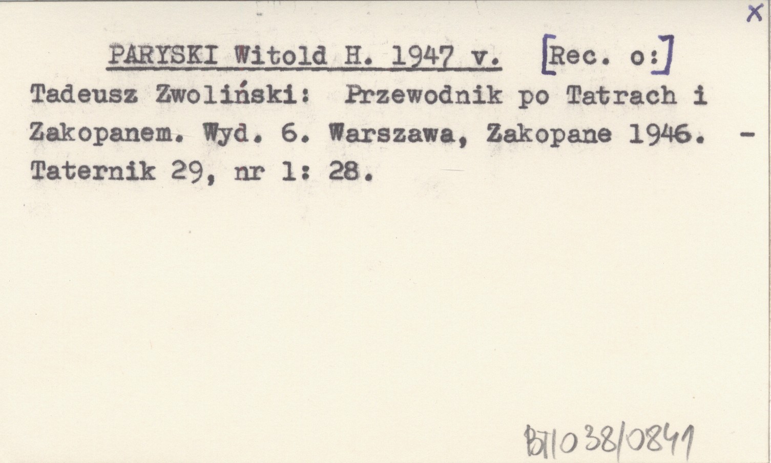 PARYSKI Witold H. 1947 v Tadeusz Zwoliński: Przewodnik po Tatrach i Zakopanem. Wyd. 6. Warszawa, Zakopane 1946.