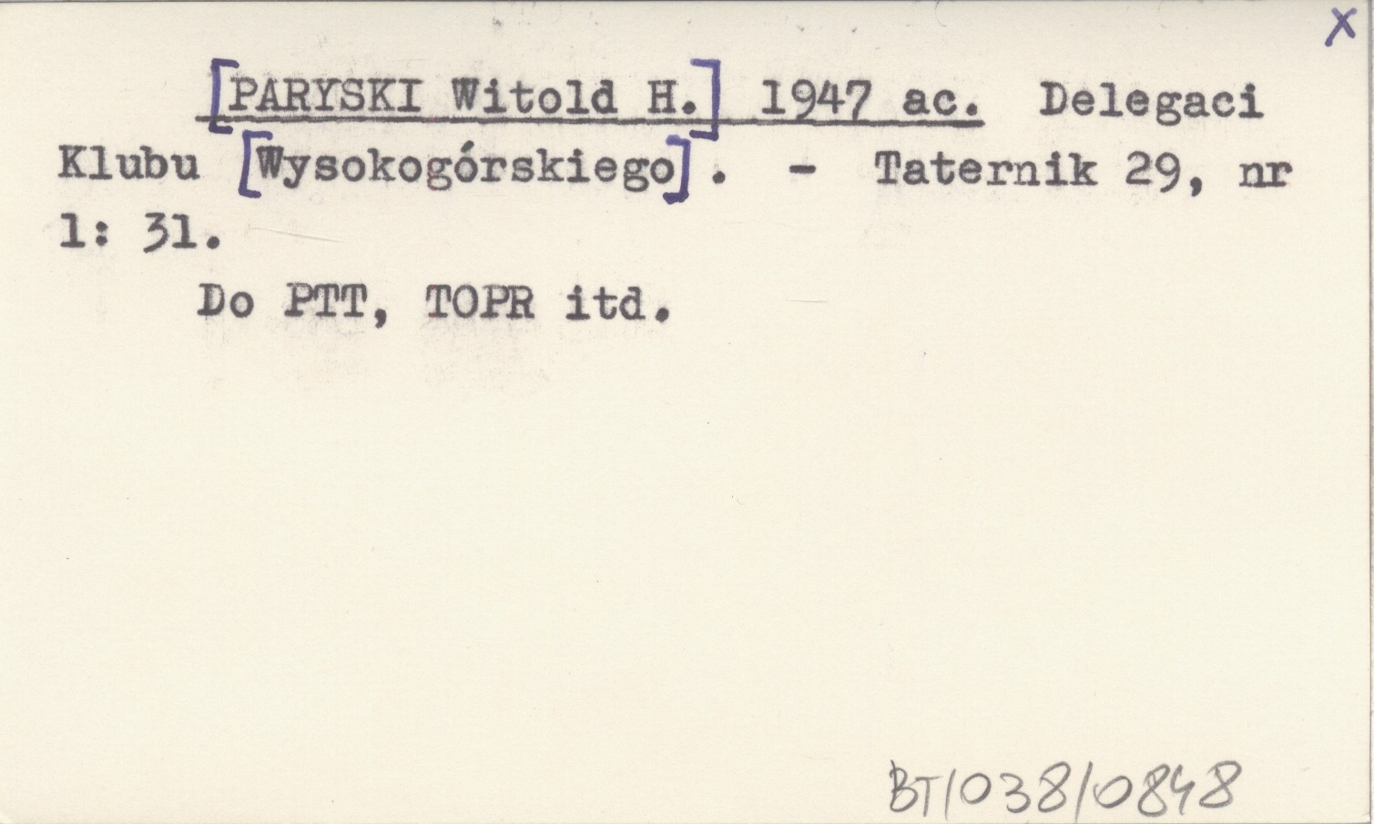 [PARYSKI Witold H.] 1947 ac Delegaci Klubu [Wysokogórskiego].