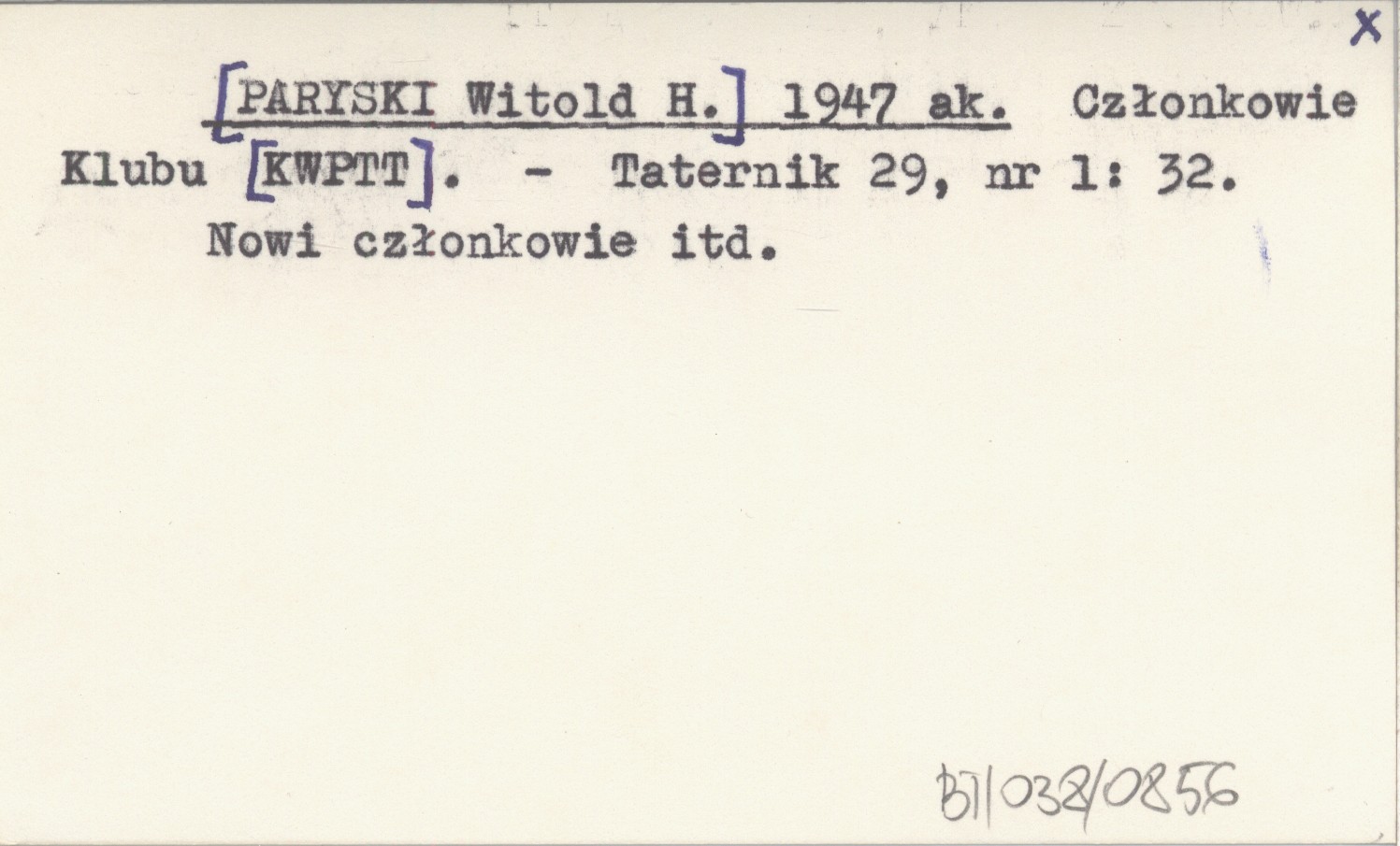 [PARYSKI Witold H.] 1947 ak Członkowie Klubu [KWPTT].