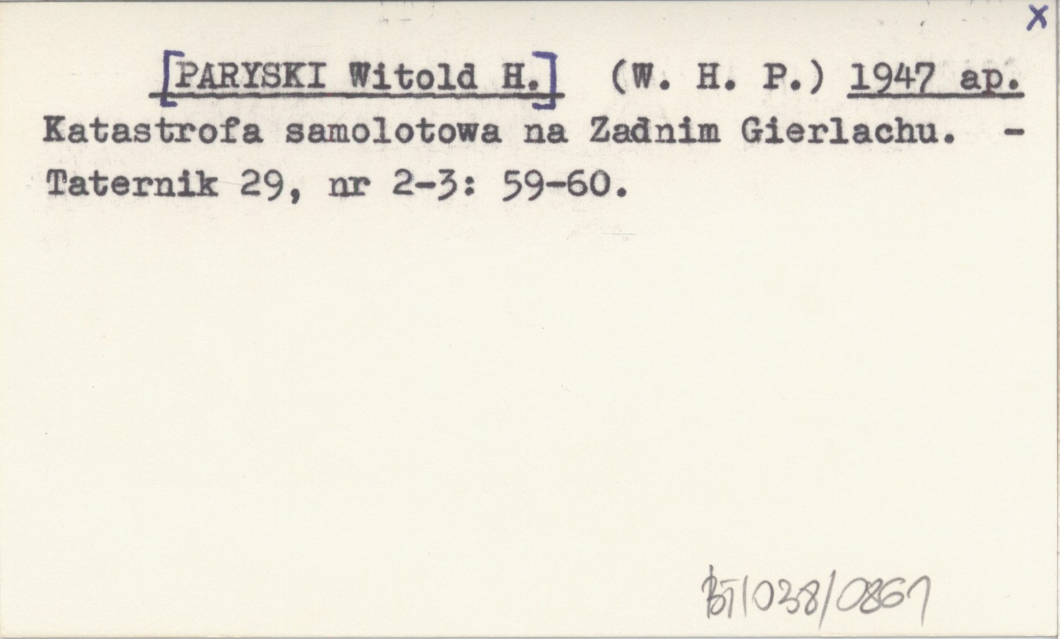 (W. H. P.) [PARYSKI Witold H.] 1947 ap Katastrofa samolotowa na Zadnim Gierlachu.