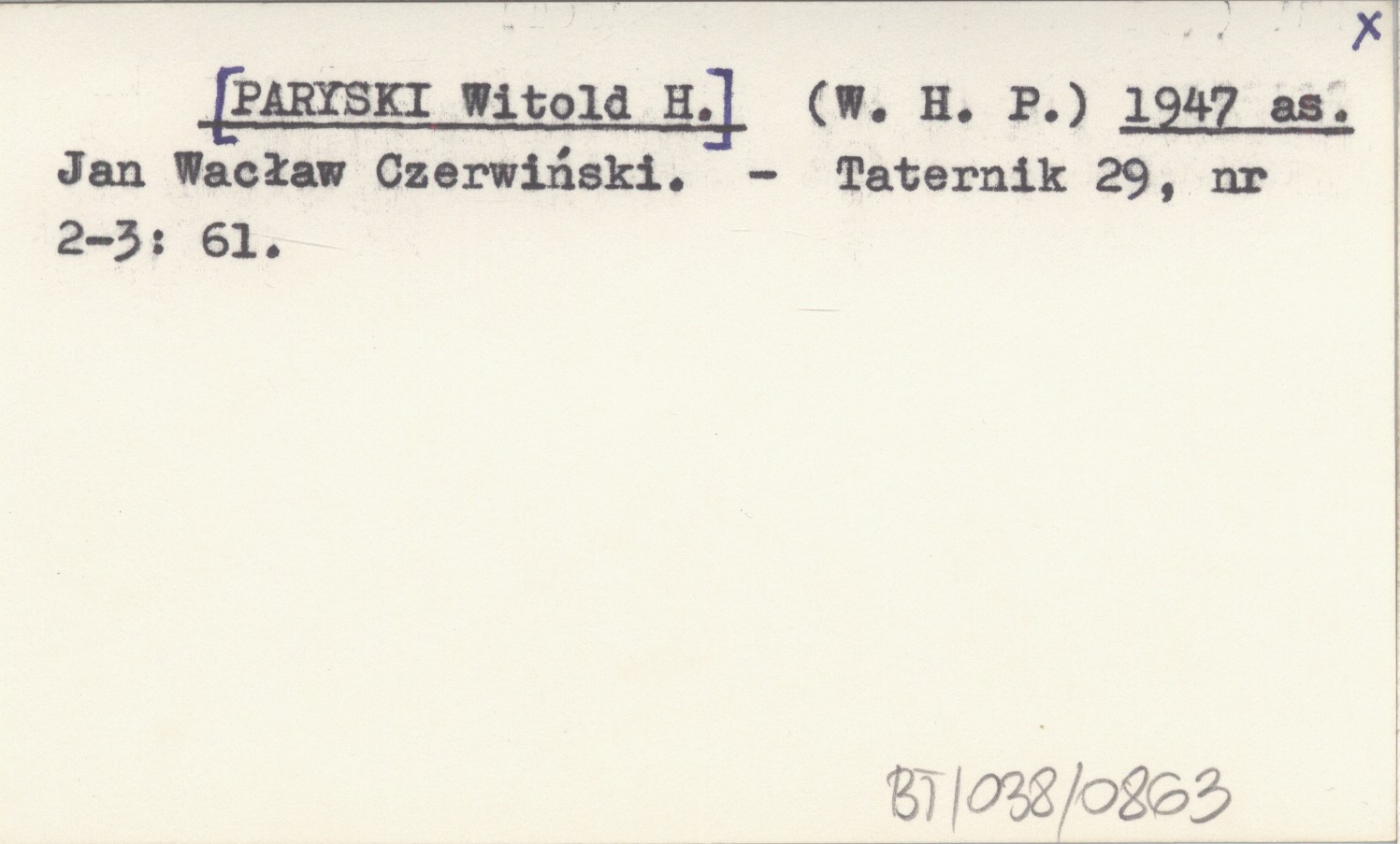 (W. H. P.) [PARYSKI Witold H.] 1947 as Jan Wacław Czerwiński.