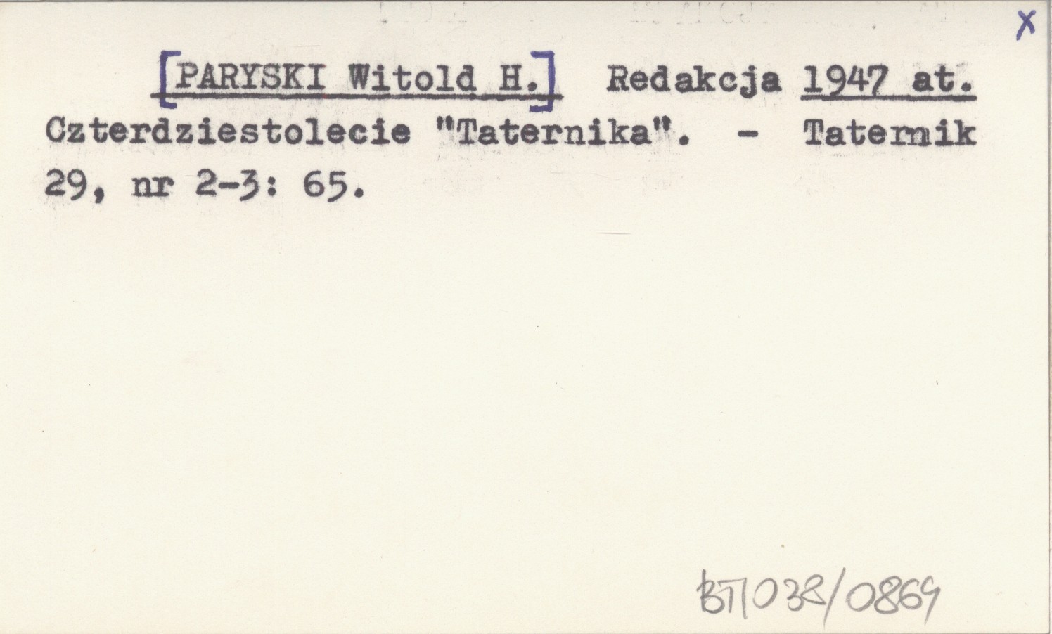 Redakcja [PARYSKI Witold H.] 1947 at Czterdziestolecie "Taternika".