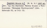 (W. H. P.) [PARYSKI Witold H.] 1947 ay Jan Reychman: Walery Eljasz a Wielkopolska. "Przegląd Wielkopolski" 1946.