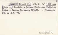 (W. H. P.) [PARYSKI Witold H.] 1947 az Kazimierz Saysse-Tobiczyk: Podhale, Spisz i Orawa. Warszawa (1947).