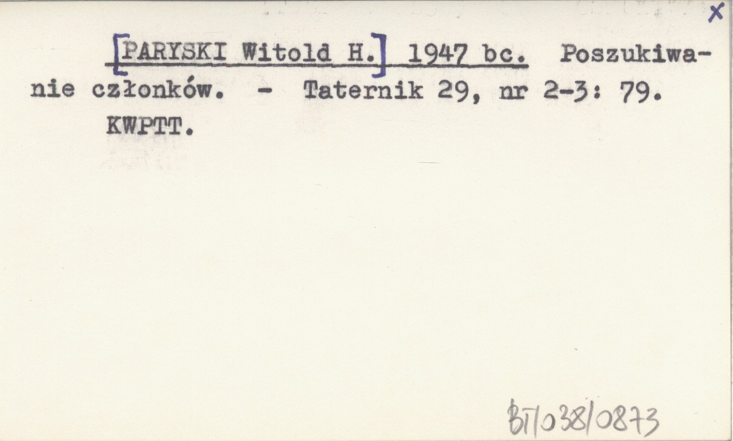 [PARYSKI Witold H.] 1947 bc Poszukiwanie członków.