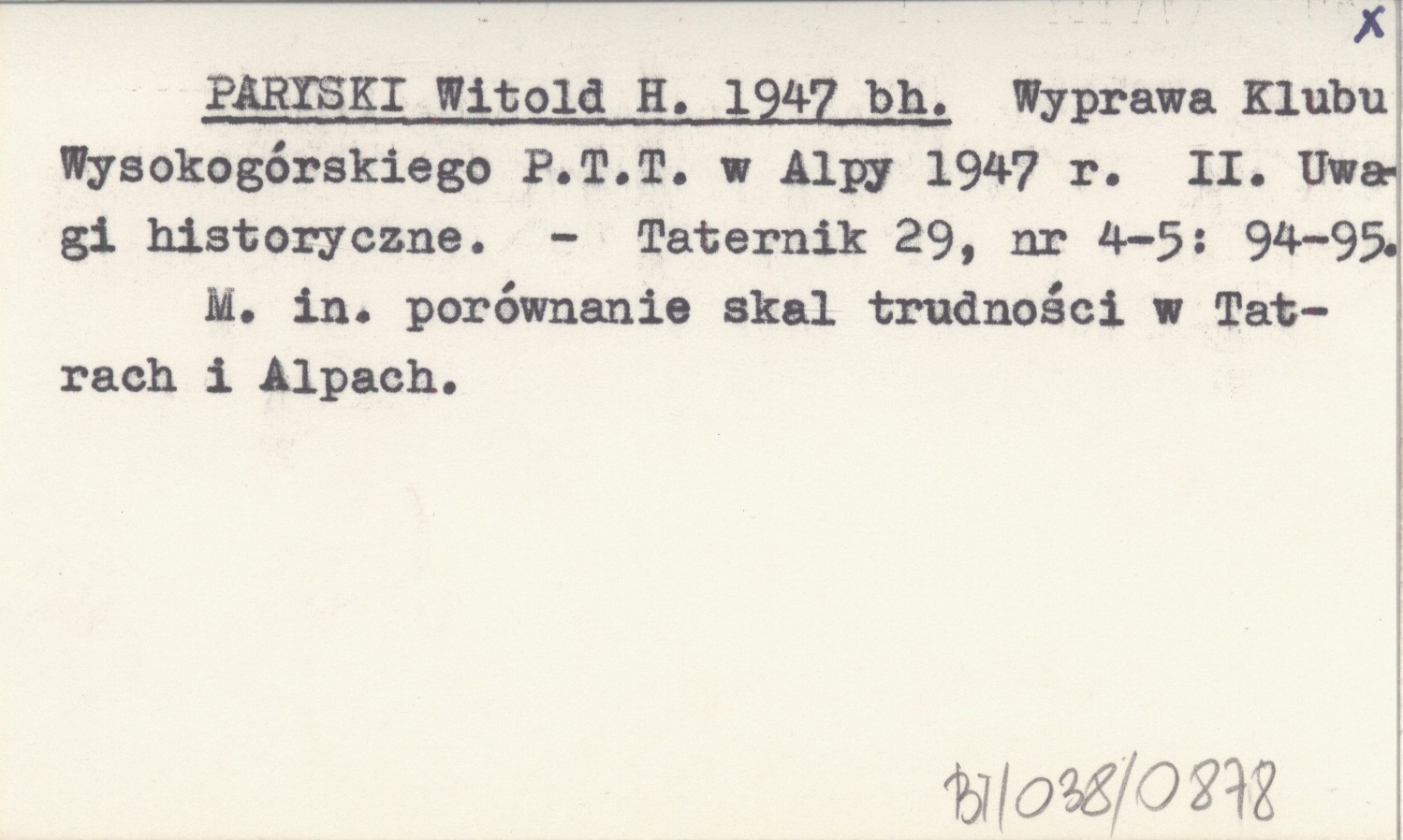 PARYSKI Witold H. 1947 bh Wyprawa Klubu Wysokogórskiego P.T.T. w Alpy 1947 r. II. Uwagi historyczne.