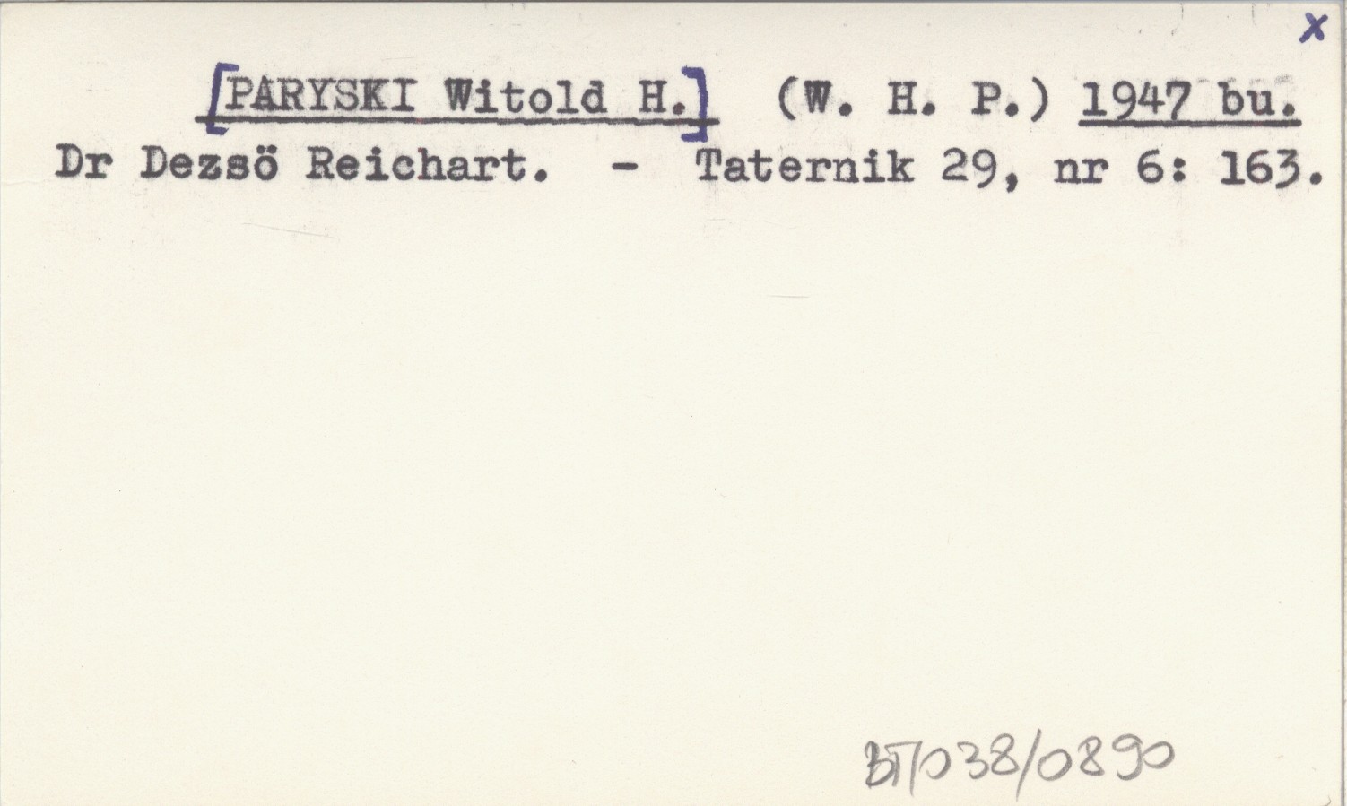 (W. H. P.) [PARYSKI Witold H.] 1947 bu Dr Dezsö Reichart.