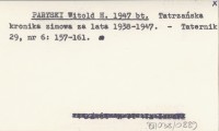 PARYSKI Witold H. 1947 bt Tatrzańska kronika zimowa za lata 1938-1947.