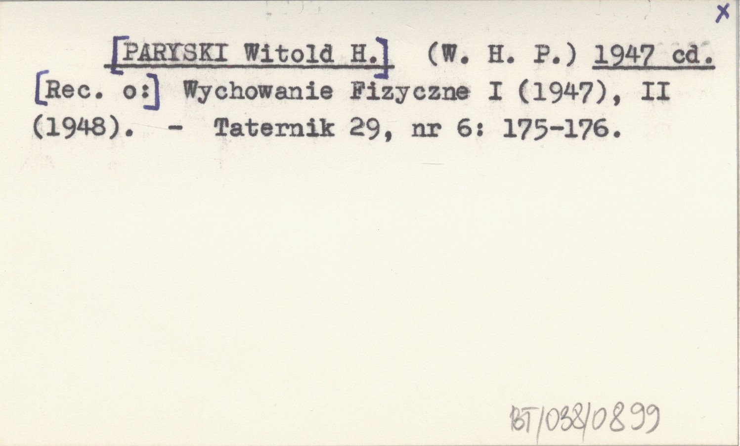 (W. H. P.) [PARYSKI Witold H.] 1947 cd Wychowanie Fizyczne I (1947), II (1948).