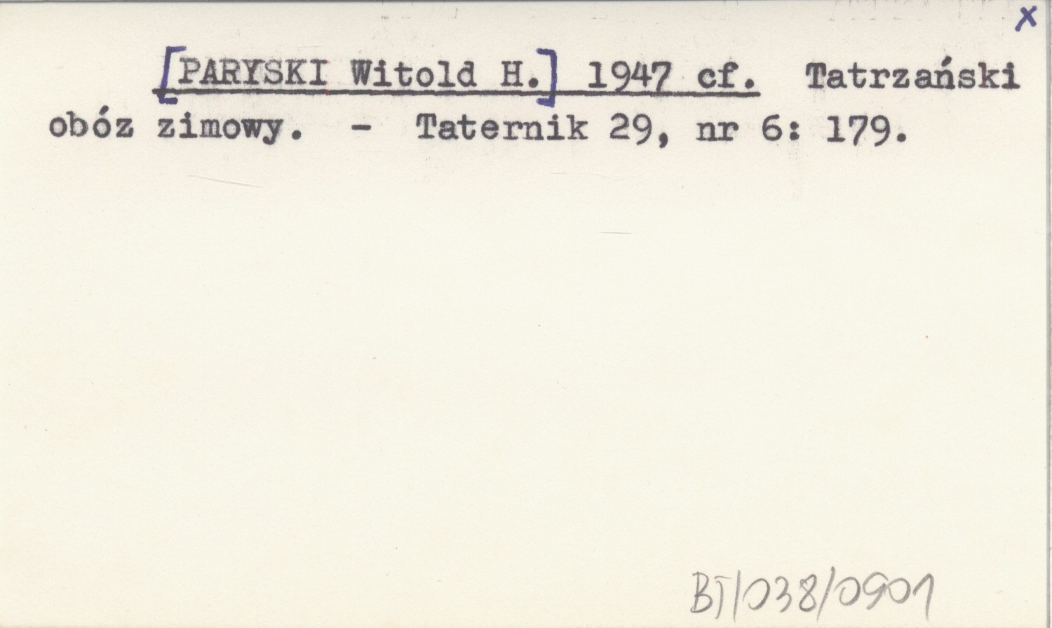 [PARYSKI Witold H.] 1947 cf Tatrzański obóz zimowy.
