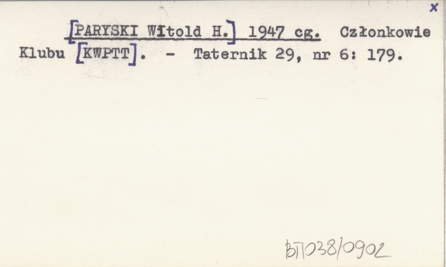 [PARYSKI Witold H.] 1947 cg Członkowie Klubu [KWPTT].